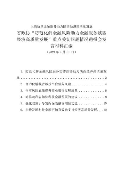 交流发言:20240416省政协“防范化解金融风险助力金融服务陕西经济高质量发展”重点关切问题情况通报会发言材料汇编(6篇)