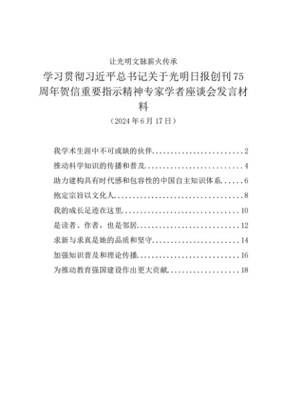 / 交流发言:20240617学习贯彻习近平总书记关于光明日报创刊75周年贺信重要指示精神专家学者座谈会发言材料(10篇)