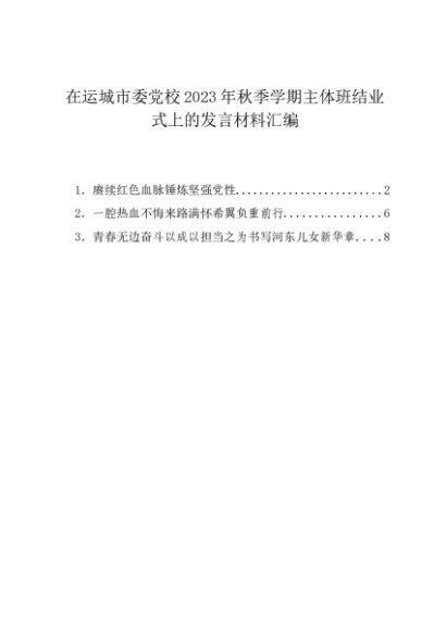 / 交流发言:20231230在市委党校2023年秋季学期主体班结业式上的发言材料汇编(3篇)