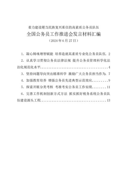 / 交流发言:20240627全国公务员工作推进会发言材料汇编(6篇)