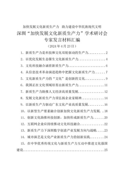 / 交流发言:20240423深圳“加快发展文化新质生产力”学术研讨会专家发言材料汇编(16篇)