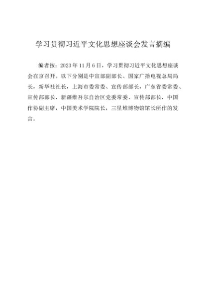/ 交流发言:20231113学习贯彻习近平文化思想座谈会发言摘编(8篇)