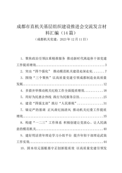 / 交流发言:20231211成都市直机关基层组织建设推进会交流发言材料汇编(14篇)