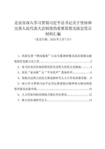 / 交流发言:20240207北京市深入学习贯彻习近平总书记关于坚持和完善人民代表大会制度的重要思想交流会发言材料7篇