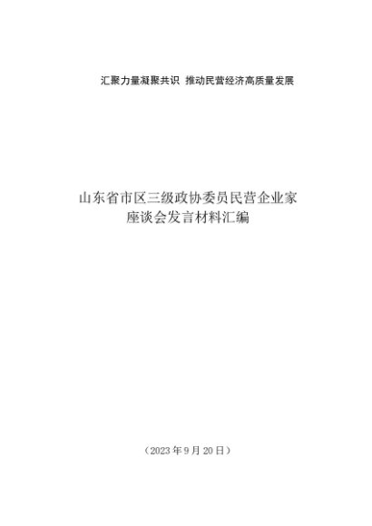 / 交流发言:20230920山东省市区三级政协委员民营企业家座谈会发言材料汇编(10篇)