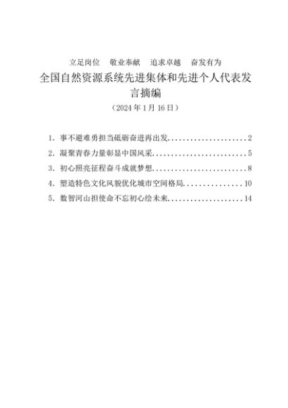 / 交流发言:20240116全国自然资源系统先进集体和先进个人代表发言摘编5篇