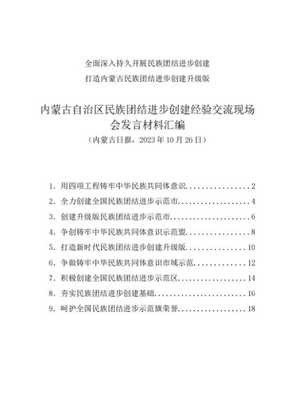 / 交流发言:20231026内蒙古自治区民族团结进步创建经验交流现场会发言材料汇编(9篇)