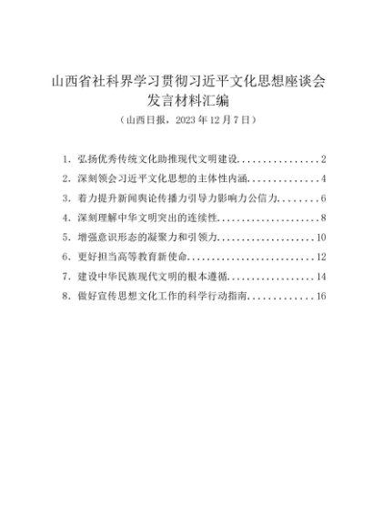 / 交流发言:20231207社科界学习贯彻习近平文化思想座谈会发言材料汇编(8篇)