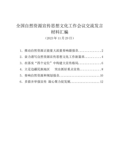 / 交流发言:20231129全国自然资源宣传思想文化工作会议交流发言材料汇编(6篇)
