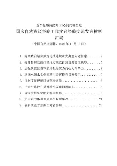 / 交流发言:20231116国家自然资源督察工作实践经验交流发言材料汇编(9篇)