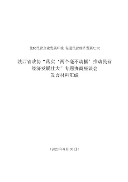 / 交流发言:20230830陕西省政协落实两个毫不动摇 推动民营经济发展壮大协商座谈会发言材料汇编(8篇)