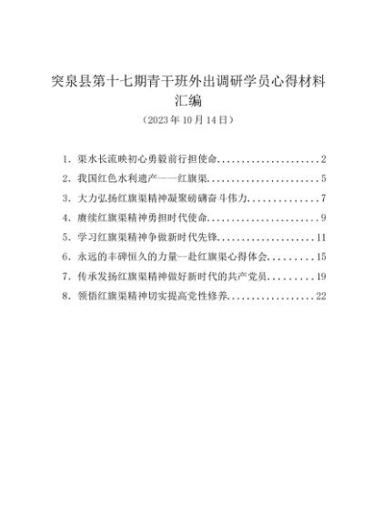 / 交流发言:20231014青干班红旗渠参观见学心得材料汇编(8篇)