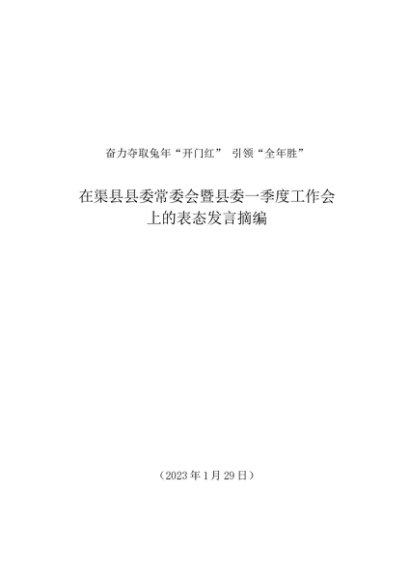 / 交流发言:20230129在渠县县委常委会暨县委一季度工作会(开年工作筹划)表态发言摘编(8篇)