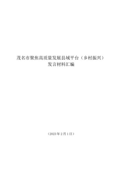 / 交流发言:20230201茂名市聚焦高质量发展县域平台(乡村振兴)(开年工作筹划)发言材料汇编(8篇)