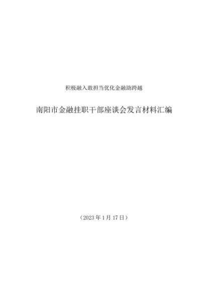 / 交流发言:20230107南阳市金融挂职干部座谈会发言材料汇编(8篇)