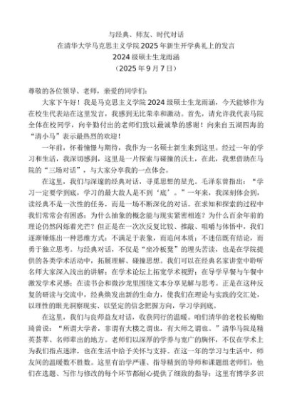 / 领导讲话:20250915在清华大学马克思主义学院2025年新生开学典礼上的发言:与经典、师友、时代对话