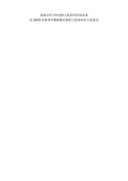 / 领导讲话:20250915在2025年秋季学期新聘任教职工职前培训上的讲话:真诚合作与时进取人机协同共创未来
