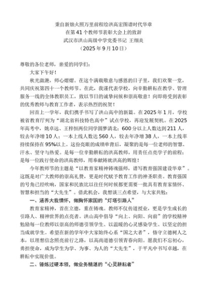 / 领导讲话:20250915在第41个教师节表彰大会上的致辞:秉自新烛火照万里前程绘洪高宏图谱时代华章