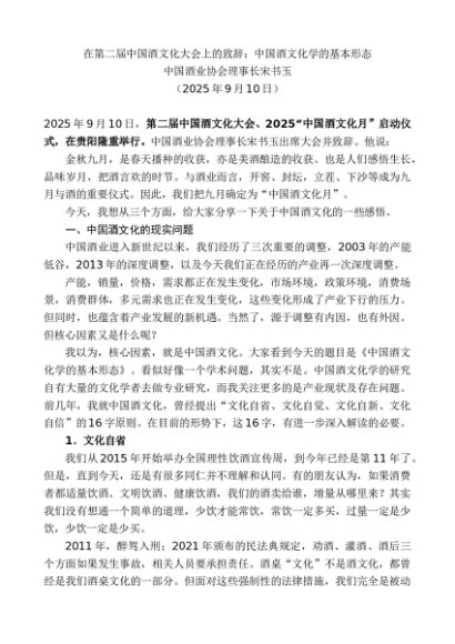 / 领导讲话:20250915中国酒业协会理事长宋书玉:在第二届中国酒文化大会上的致辞:中国酒文化学的基本形态