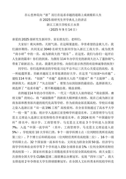 / 领导讲话:20250915在2025级研究生开学典礼上的讲话:在心里种花向“新”而行在追求卓越的道路上成就精彩人生