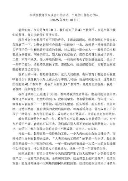 / 领导讲话:20250915在学校教师节座谈会上的讲话:平凡的工作努力的人