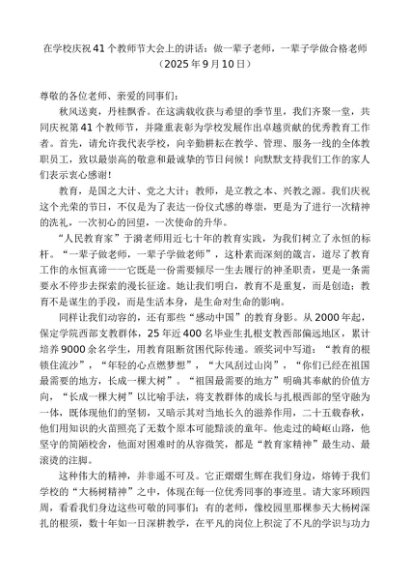 / 领导讲话:20250915在学校庆祝41个教师节大会上的讲话:做一辈子老师,一辈子学做合格老师