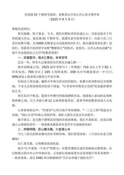 / 领导讲话:20250915庆祝第41个教师节致辞:躬耕杏坛守初心丹心育才铸华章