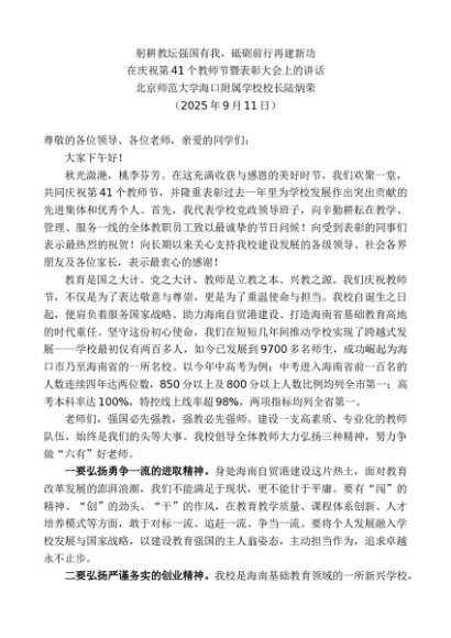 / 领导讲话:20250915在庆祝第41个教师节暨表彰大会上的讲话:躬耕教坛强国有我,砥砺前行再建新功