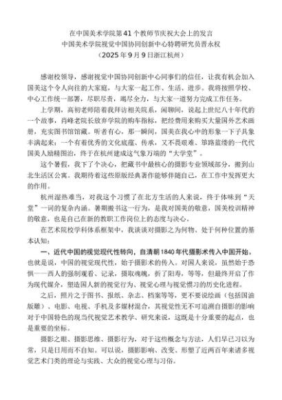 领导讲话:20250915晋永权:在中国美术学院第41个教师节庆祝大会上的发言