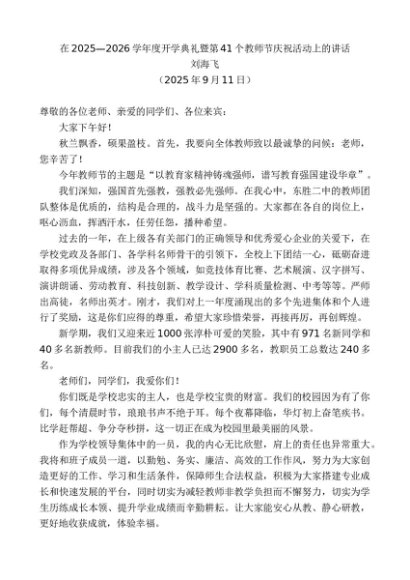 / 领导讲话:20250915刘海飞:在2025—2026学年度开学典礼暨第41个教师节庆祝活动上的讲话