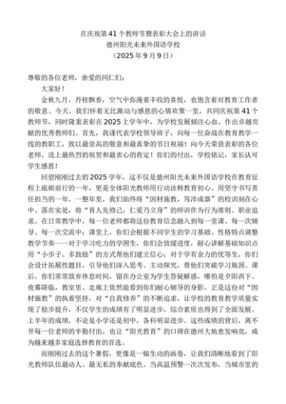/ 领导讲话:20250915德州阳光未来外国语学校:在庆祝第41个教师节暨表彰大会上的讲话