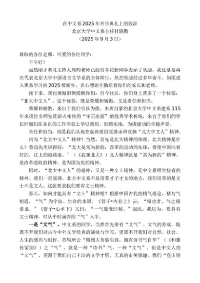 / 领导讲话:20250915北京大学中文系主任杜晓勤:在中文系2025年开学典礼上的致辞
