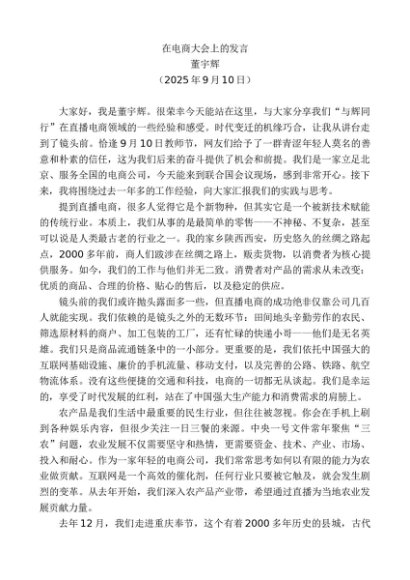 / 领导讲话:20250915董宇辉:在电商大会上的发言
