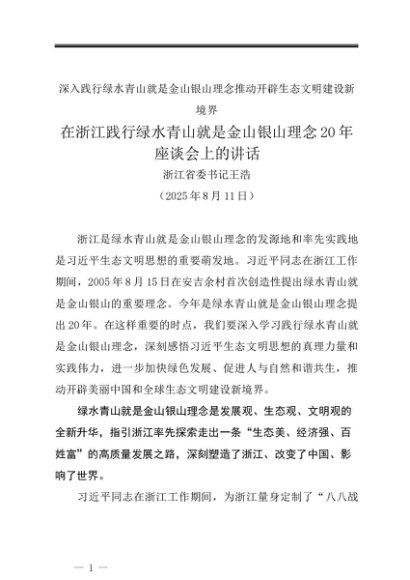 / 领导讲话:20250811在浙江践行绿水青山就是金山银山理念20年座谈会上的讲话——浙江省委书记王浩