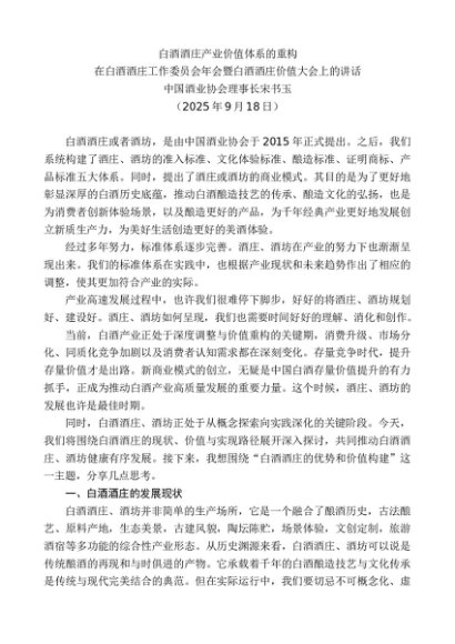 / 领导讲话:20250930在白酒酒庄工作委员会年会暨白酒酒庄价值大会上的讲话:白酒酒庄产业价值体系的重构