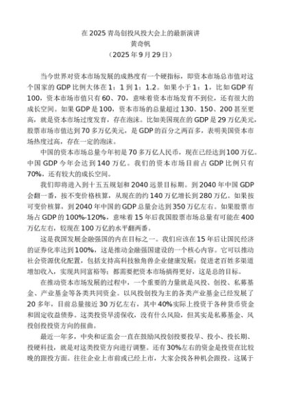 / 领导讲话:20250930黄奇帆:在2025青岛创投风投大会上的最新演讲