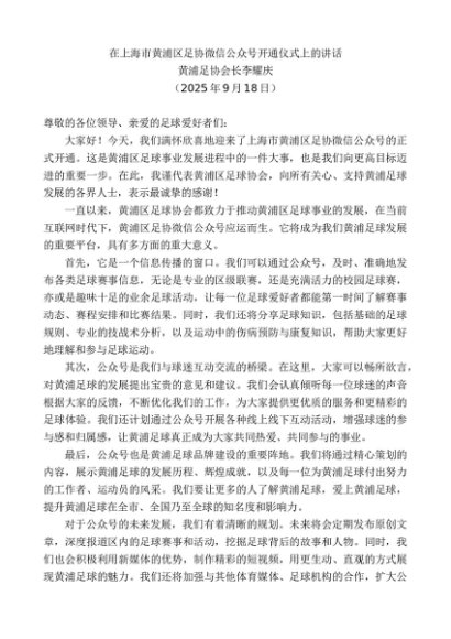 / 领导讲话:20250930黄浦足协会长李耀庆:在上海市黄浦区足协微信公众号开通仪式上的讲话