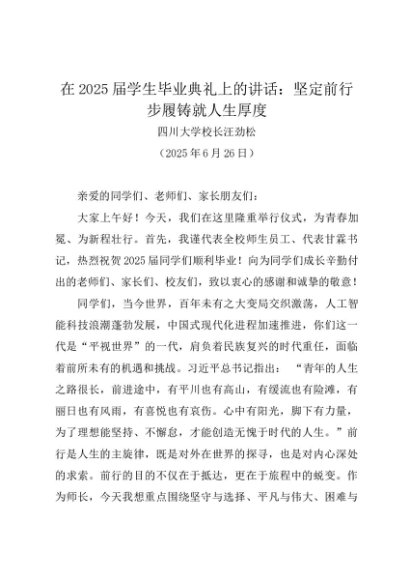/ 领导讲话:20250626在2025届学生毕业典礼上的讲话——四川大学校长汪劲松