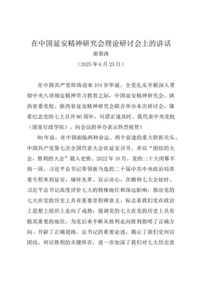 / 领导讲话:20250625在中国延安精神研究会理论研讨会上的讲话——谢春涛