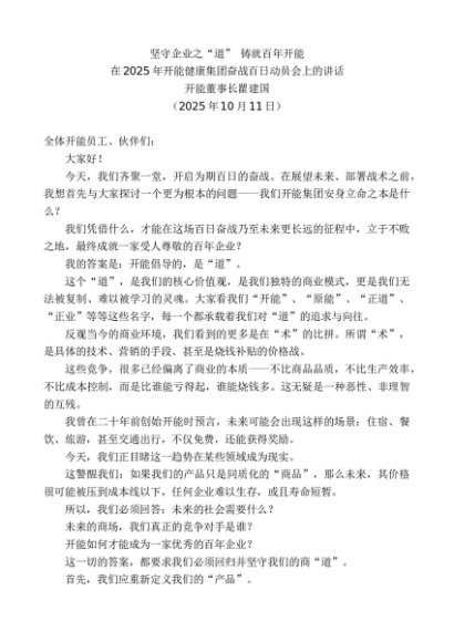 / 领导讲话:20251015在2025年开能健康集团奋战百日动员会上的讲话:坚守企业之“道”铸就百年开能