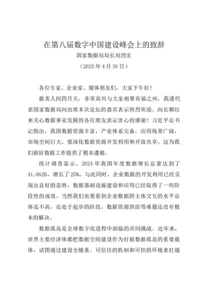 / 领导讲话:20250430在第八届数字中国建设峰会上的致辞——国家数据局局长刘烈宏