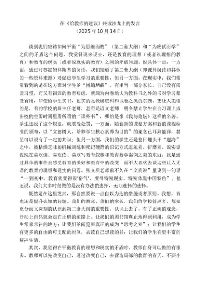 / 领导讲话:20251015在《给教师的建议》共读沙龙上的发言