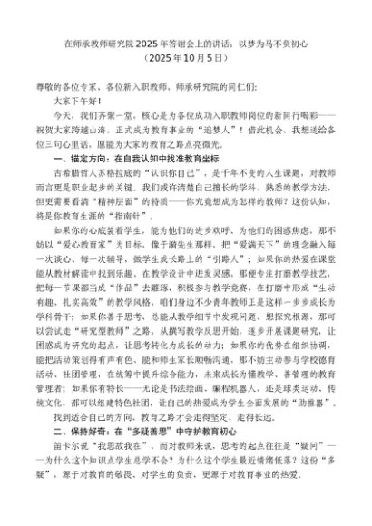 / 领导讲话:20251015在师承教师研究院2025年答谢会上的讲话:以梦为马不负初心
