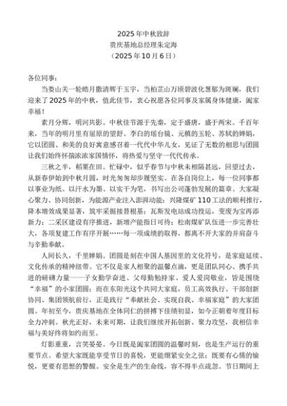 领导讲话:20251015贵庆基地总经理朱定海:2025年中秋致辞