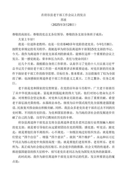 / 领导讲话:20250328苏波:在府谷县老干部工作会议上的发言