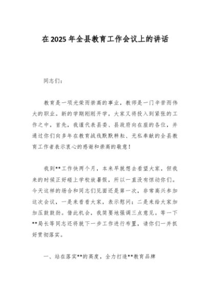/ 领导讲话:20250320在2025年全县教育工作会议上的讲话