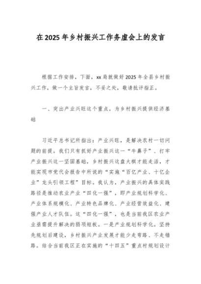 / 领导讲话:20250320在2025年乡村振兴工作务虚会上的发言