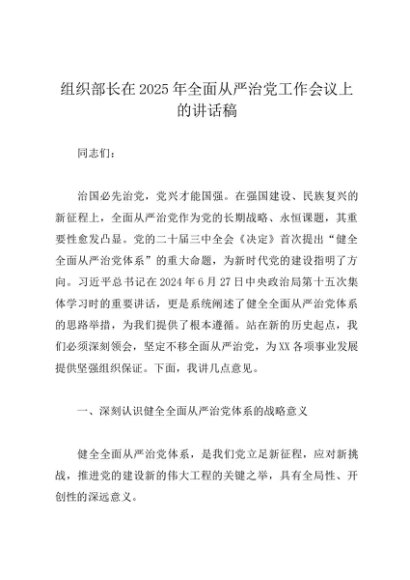 / 领导讲话:20250318组织部长在2025年全面从严治党工作会议上的讲话稿
