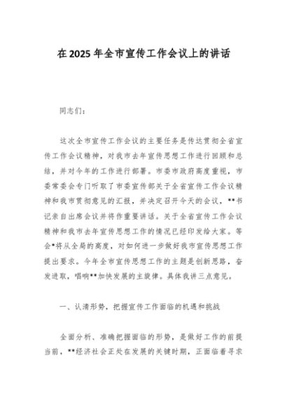 / 领导讲话:20250320在2025年全市宣传工作会议上的讲话