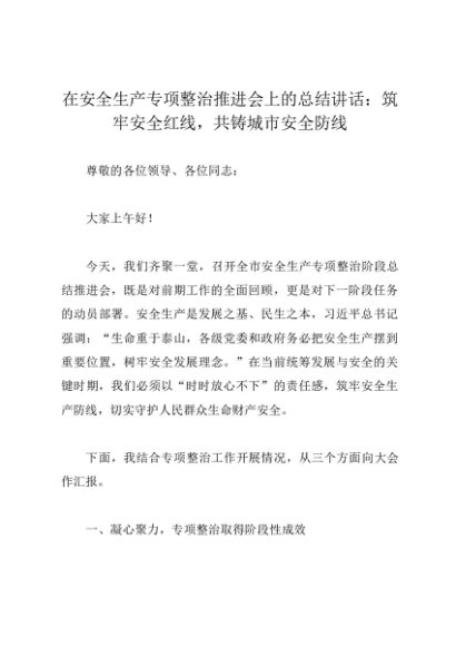 / 领导讲话:20250318在安全生产专项整治推进会上的总结讲话:筑牢安全红线,共铸城市安全防线